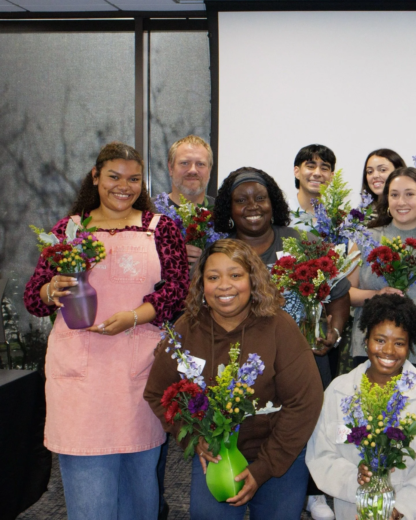 View fullsize Join us December 6 at 1pm for Merrily Crafted, a holiday themed floral workshop! Participants will learn floral design fundamentals and create personalized vase arrangements featuring holiday inspired jewel tones.